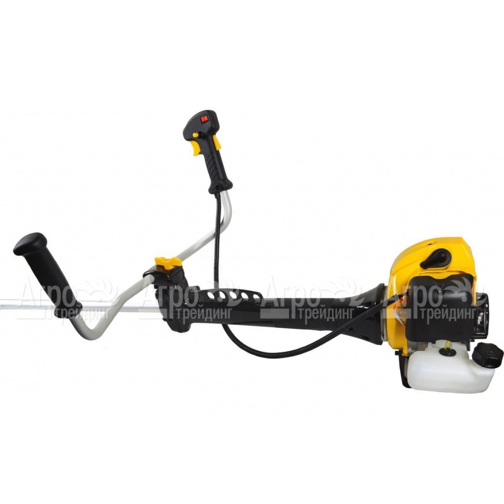 Особого внимания заслуживает ручка, адаптированная под две руки, что также способствует удобству при использовании. В свою очередь, внушительная ширина кошения позволяет повысить эффективность рабочего процесса. Немаловажным достоинством модели считается применение вместительного топливного бака – для продолжительной и непрерывной работы. Для минимизации вибрации приводной вал фиксируется на демпферах.
