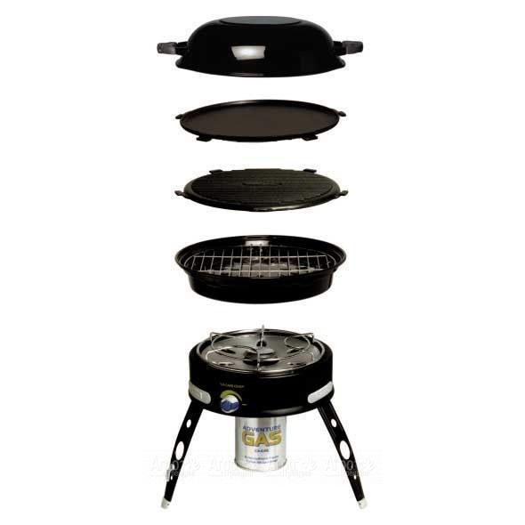 Газовый гриль барбекю 5 независимых поверхностей для приготовления: гриль-решетка, сковорода, антипригный гриль с ребрами антипригарная плита-гриль, горелка, чехол-сумка используется с газовым картриджем.