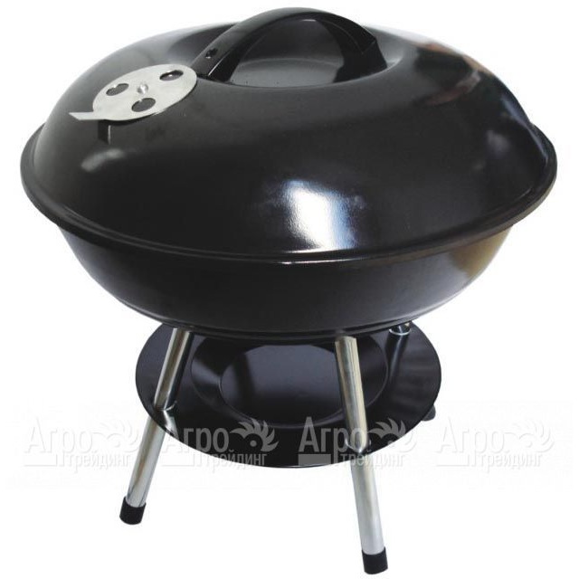 Металлический сферический гриль Green Glade 22014A круглого сечения. Перемещение осуществляется на колесиках. В комплекте крышка, пепелосборник, решетка диаметром 35 см. Два регулятора подачи воздуха.