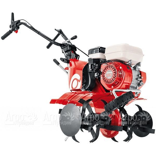 Характеристики товара: Культиватор Solo by Al-KO 7505 V2RПодробное описание товараТехнические возможности культиватора Solo by Al-KO 7505 V2R предоставят оптимальный комфорт и удовлетворят запросы взыскательного пользователя. Приличная масса и мощность двигателя позволяют возделывать участки с тяжелым грунтом. Двигатель Honda, имеющий горизонтальный вал и верхнее расположение клапанов, которым комплектуется культиватор Solo by Al-KO 7505 V2R, разработан специально для аграрной техники. Благодаря электронному зажиганию обеспечивается стабильный запуск. Необходимое число оборотов поддерживается системой автоматической регулировки газа. Культиватор имеет усиленный редуктор, коробку передач из трех передач. Реверсная скорость упрощает маневрирование в ограниченном пространстве и выезд при зарывании. Возможность регулировки рукоятки по высоте и в сторону способствует удобству работы с техникой. Усиленный сошник в месте крепления с рамой культиватора, обеспечивает надежность и износостойкость. Съемные секции фрезы имеют простую и быструю систему крепления посредством шплинта. Предусмотрена система защиты от случайного включения. Специальное колесо для транспортировки упрощает доставку техники к месту назначения.